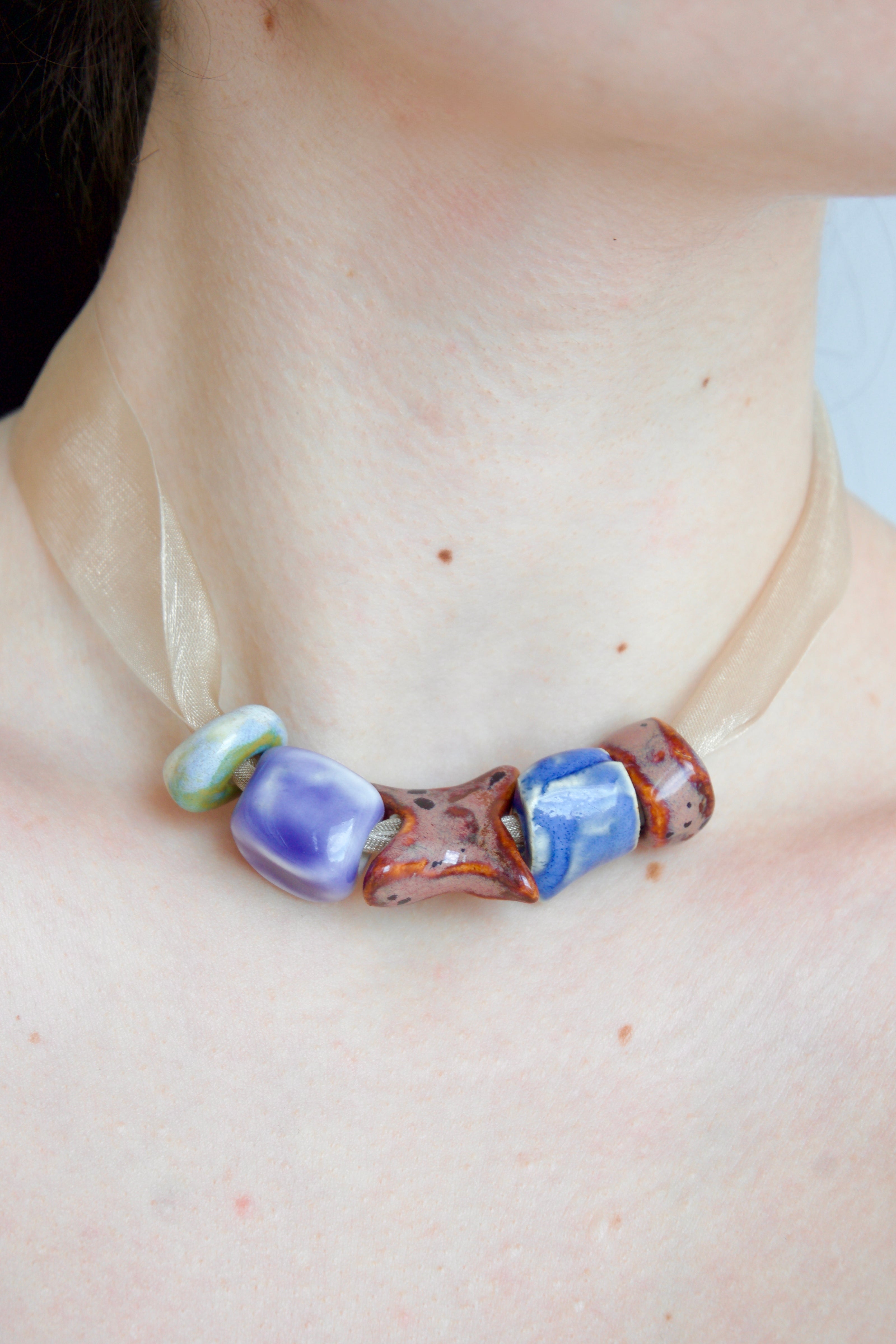 Colier Autumn storm cu mărgele din ceramică | Ecluze Studio