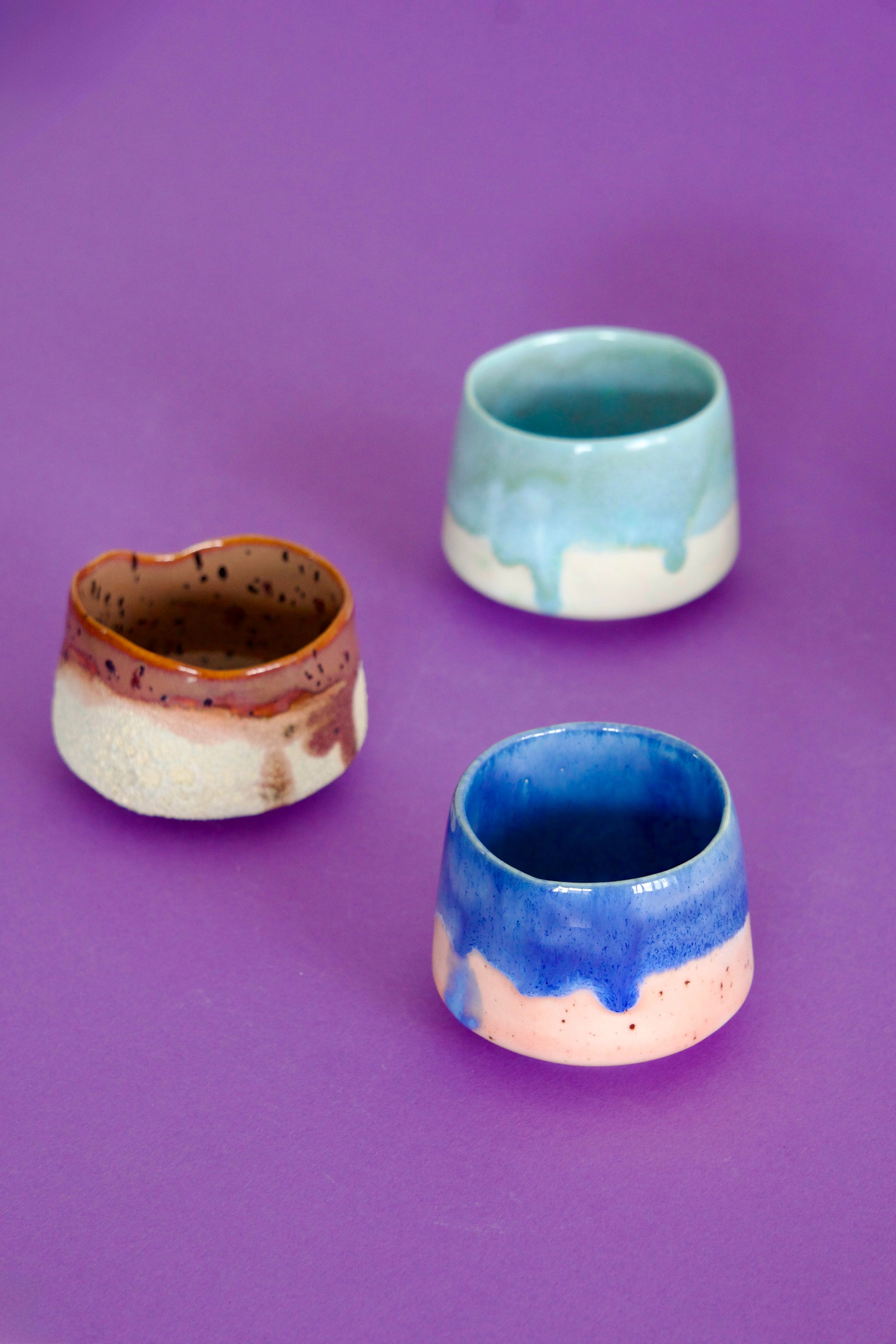 Cană espresso – Albastru ultramarin & Coral | Ecluze Studio