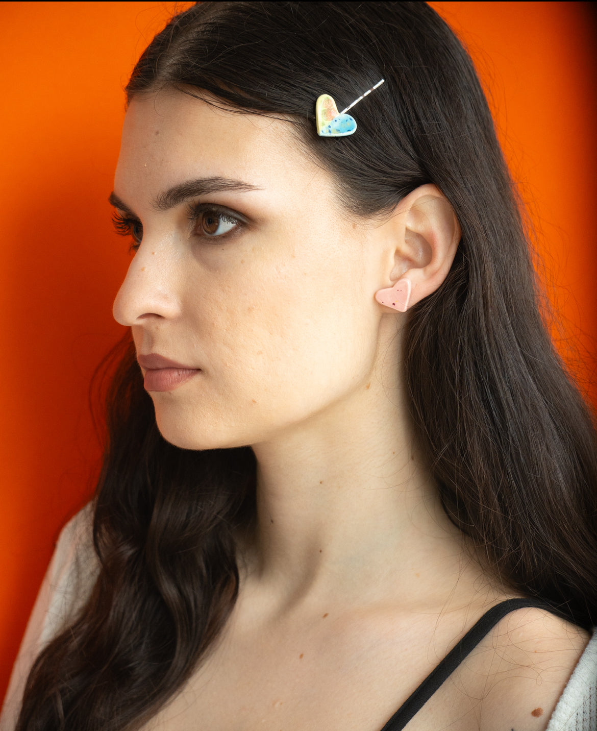 Compoziţie: mase ceramice, glazuri arse în cuptor la peste 1000°C. Tije din oțel inoxidabil hipoalergenic.