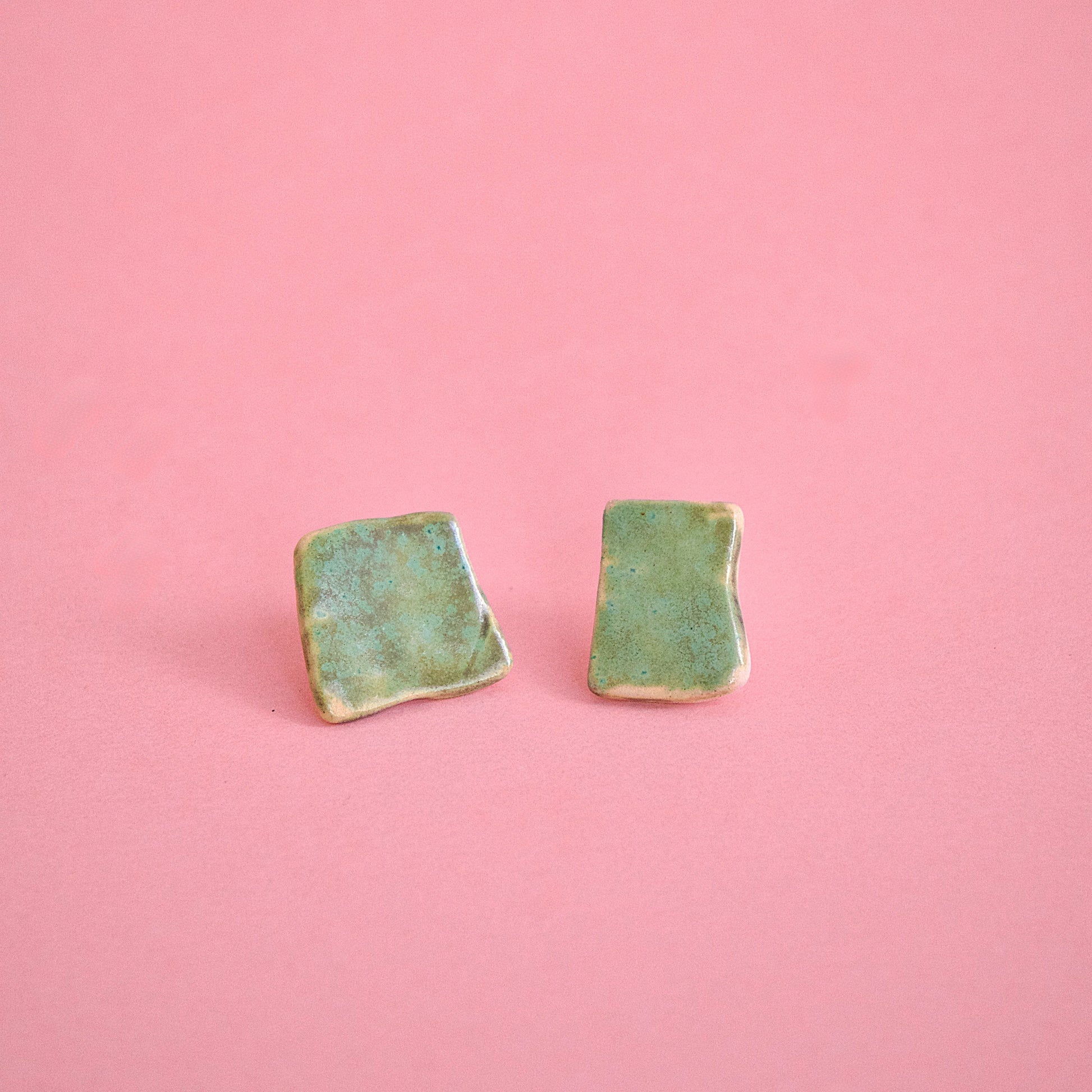 Cercei handmade asimetrici – Verde sidefat | Ecluze Studio