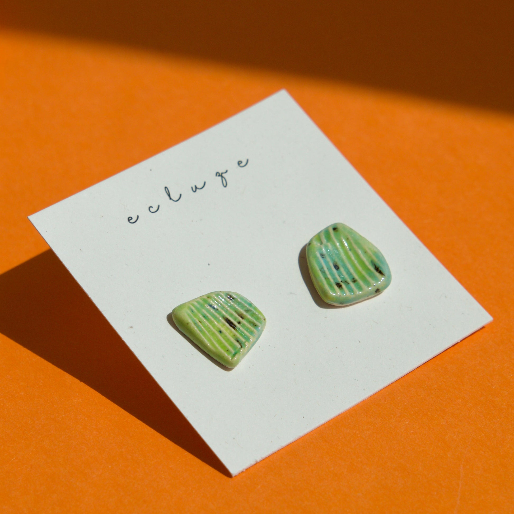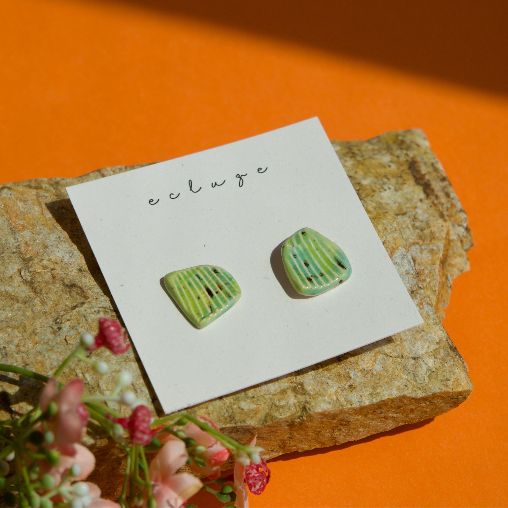 Cercei geometrici verzi din ceramică | Ecluze Studio