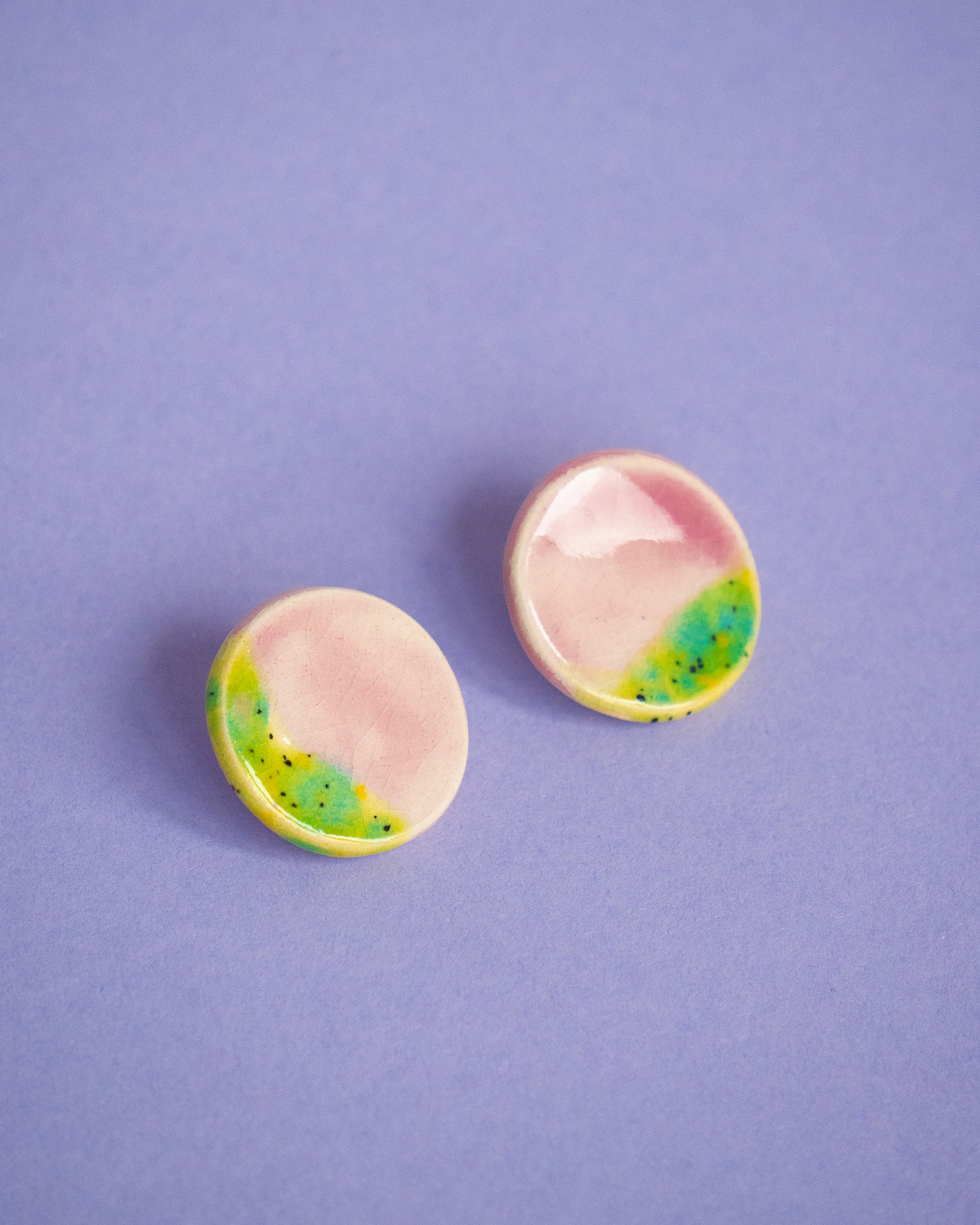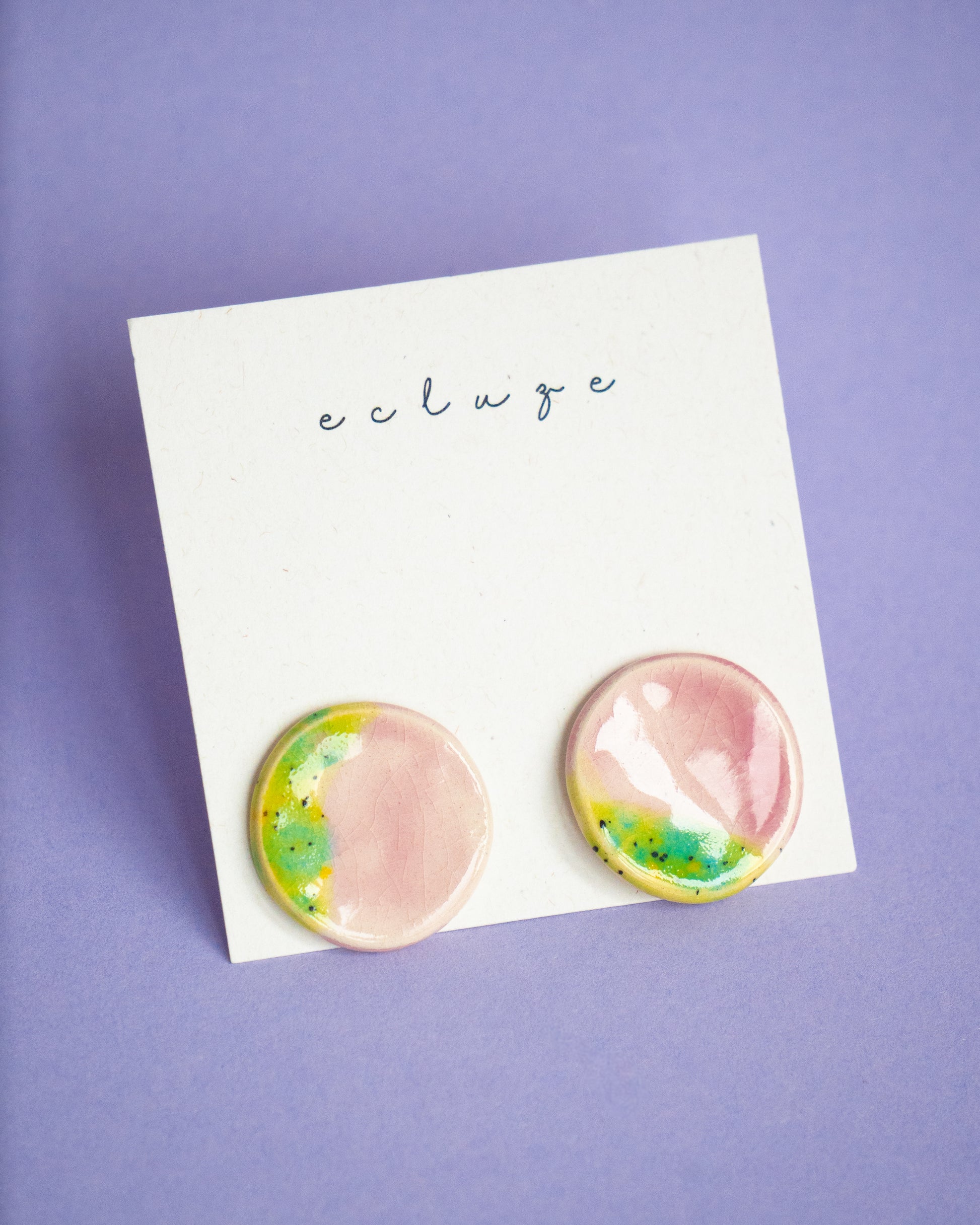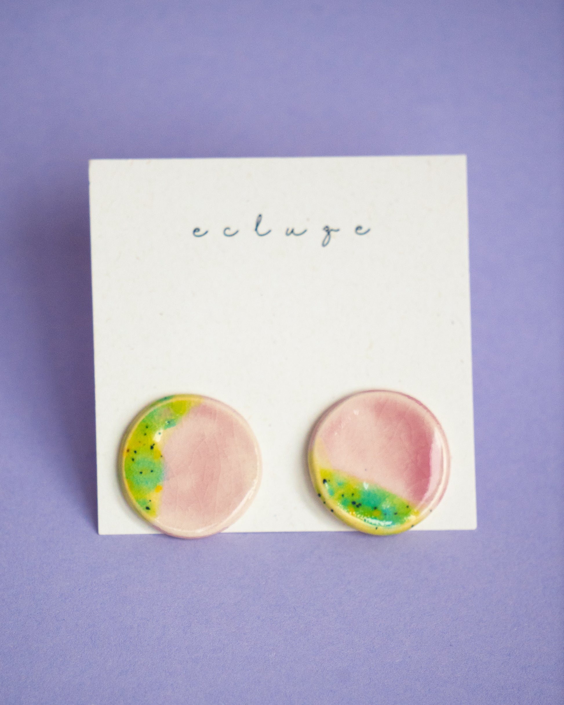 Compoziţie: mase ceramice, glazuri arse în cuptor la peste 1000°C. Tije din oțel inoxidabil hipoalergenic.