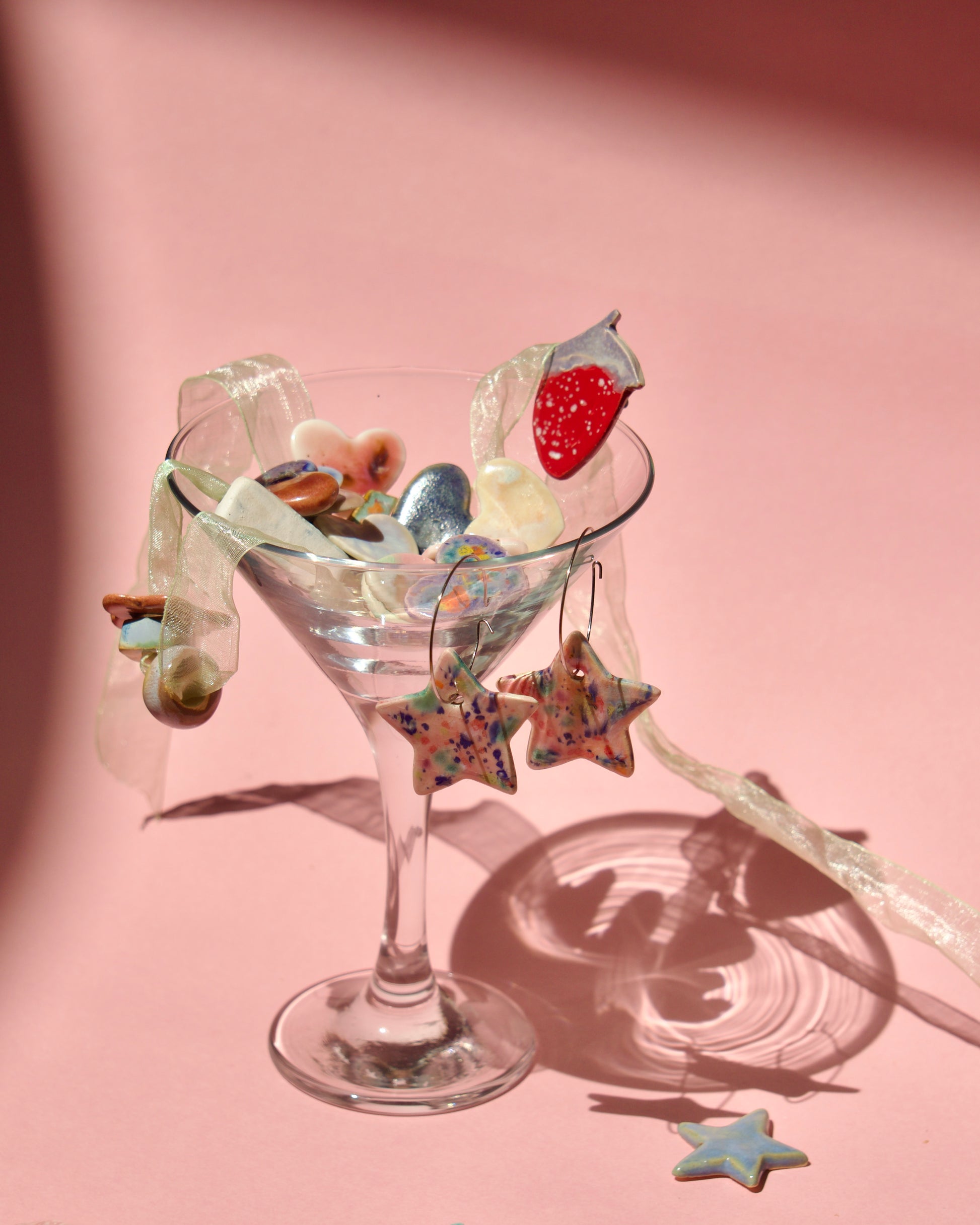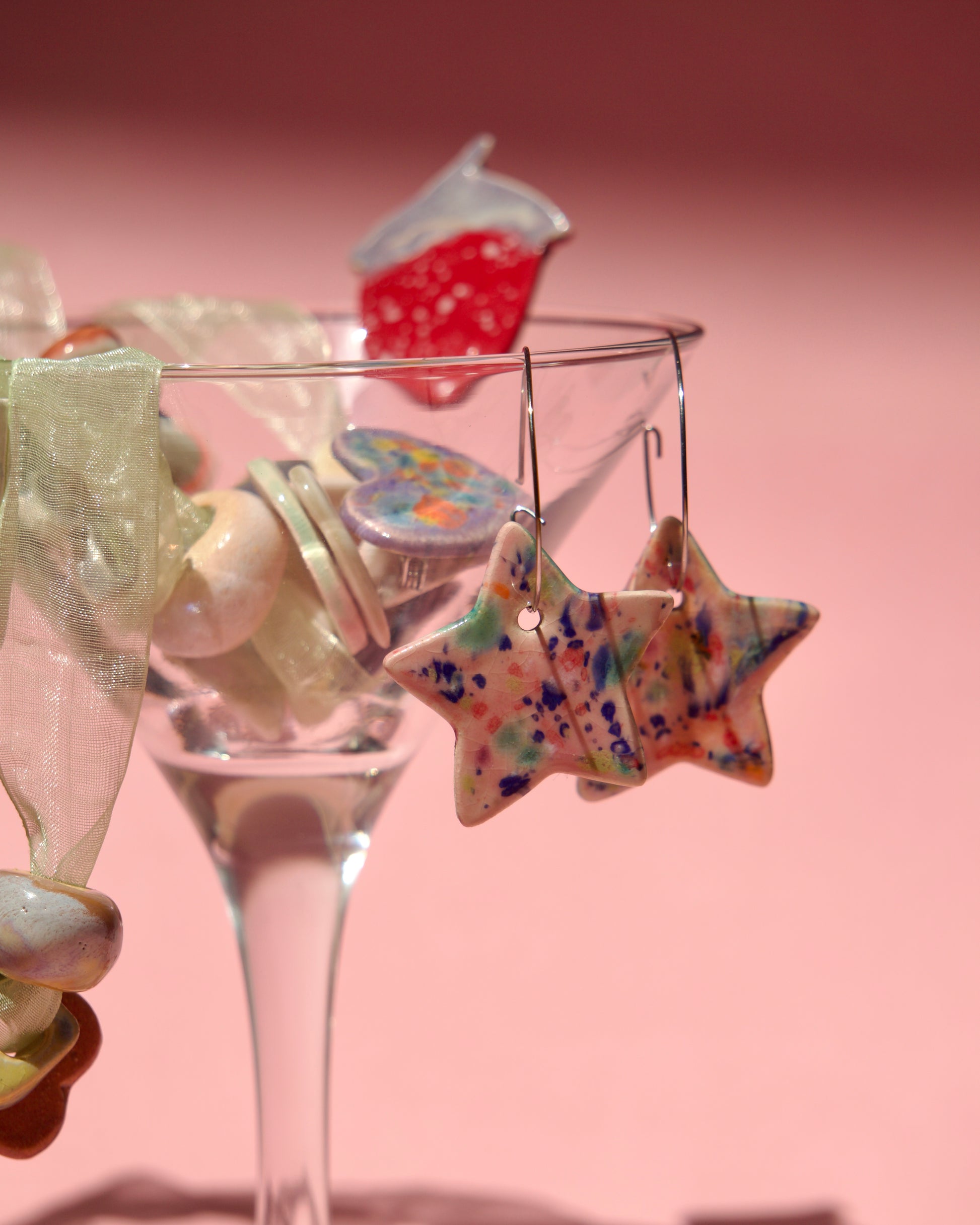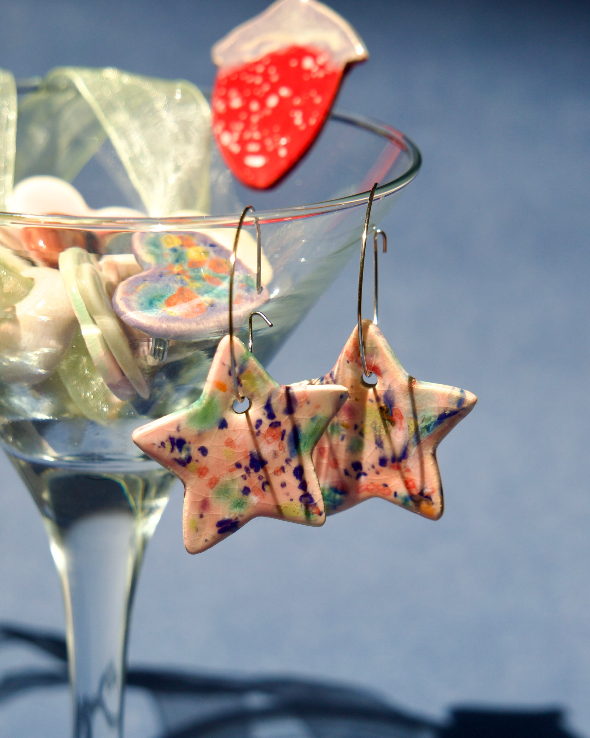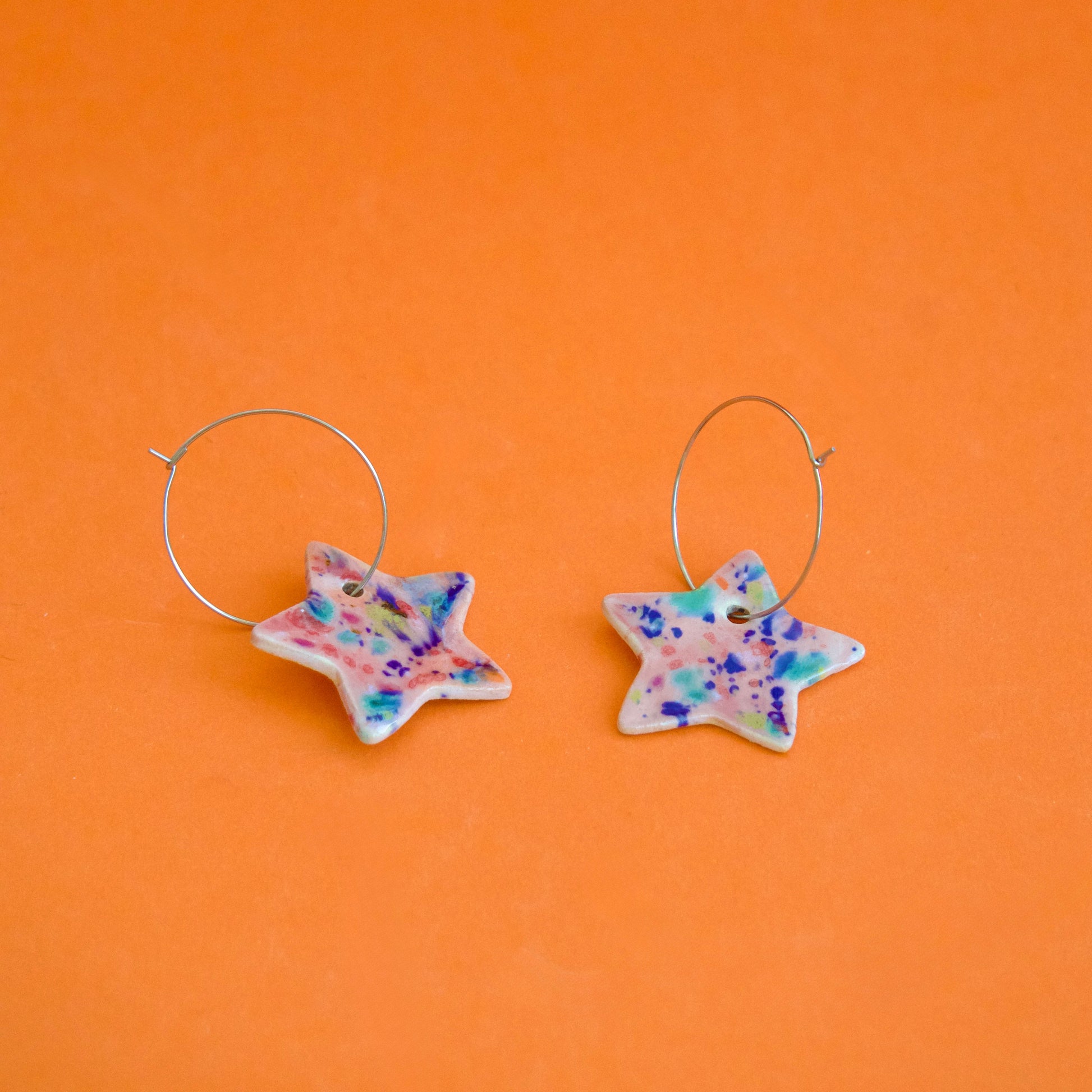 Steluțe jucăușe cu stropi glazuraţi manual în nuanțe vii, picturale, roz, mov, pasteluri, etc.